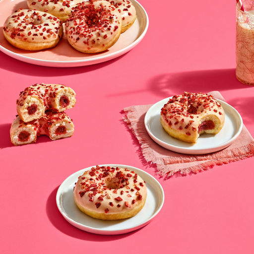 The perfect fusion of a soft, filled ring and eye-catching toppings, creating a next-level treat that stands out. -