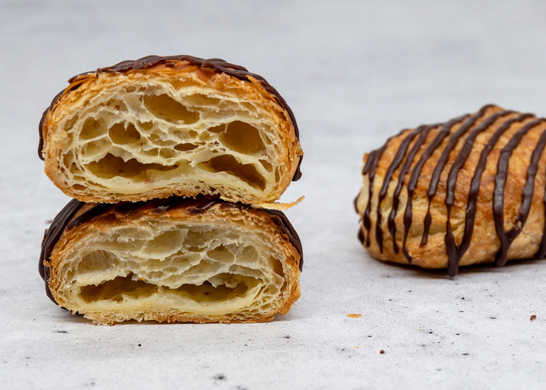 Seasonal and sophisticated, this Almond Danish Doughnut is filled with cinnamon-cardamom spiced vanilla custard and pumpkin and then topped with white chocolate condensed milk frosting and macadamia nut orange honey brittle. It's a fall favorite that’s perfect for limited-time menus.
